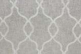 Merano White Metallic fabric is a sheer fabric with a white metallic contemporary design against a white sheer background.