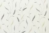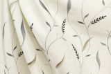 Midland Cascade is an embroidered leaf pattern in color including gray, black and taupe against a white background.
