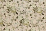 Mudan is a 100% cotton upholstery fabric with a print of flowering branches and birds.