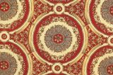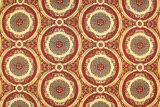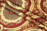 Nomi Red is a woven upholstery fabric with a damask pattern with lots of detail in red, gold, cream and gray tones.