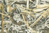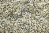 Cowboy Camo is a print of cow hooves and stirrups scattered amongst a straw covered background.
