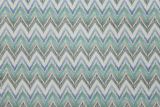 Ozy DR MK3 is a 100% cotton fabric with a zig zag pattern print in colors including white, blue, green and gray.