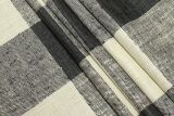 P Kaufmann Check Please Thunder is a woven check pattern fabric in charcoal and sand colors.