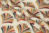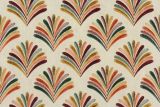 P Kaufmann Shine On Mardi Gras is a poly-cotton blend with a 100% Poly embroidered contemporary design in multiple colors.