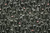 Picasso is a 100% cotton fabric with a artistic print of faces against a black background. Great for face masks!