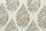 R-Pemberly Copper is a chenille fabric with a print of flowering trees in brown and gray tones against a cream color background. This fabric has a soft feel.