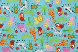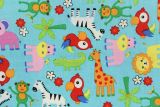 Rainforest Babies is an adorable 100% cotton fabric filled with baby animals such as tropical birds, zebras and alligators against a turquoise background. Great for face masks!