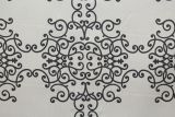Robert Allen Soft Scrolls Charcoal features a beautiful scroll pattern in charcoal color against a white background.
