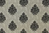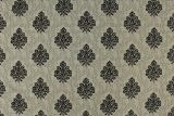 Raised chenille black crests on a textured gray background. Dramatic damask.