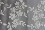 Sheer Embroidered Pasha Cream is a railroaded 116-inch wide sheer fabric with a vintage look, featuring an embroidered floral pattern in a cream color.