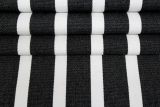 Shore Classic Sunbrella is a classic black and white stripe, solution dyed acrylic fabric with a soft hand that may be used outdoors or indoors. It's amazingly easy to maintain, and most spills can be cleaned with mild soap and water. The story keeps getting better: Sunbrella Canvas has a high resistance to fading, is mildew resistant, water resistant, shrink resistant, stretch resistant, and lasts a long time.