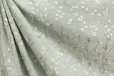 Swavelle Mill Creek Peacekeeper Crystal is a woven fabric with an embroidered floral and vine pattern in gray, white and blue colors.
