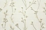 Swavelle Mill Creek Snowflake is an embroidered floral and vine pattern fabric in taupe and gray tones.
