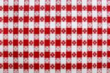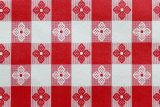 This is a red and white check vinyl fabric with fleece backing which can be used indoors and outdoors.