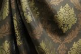 Tessuto Stralys Damask Brown is an elegant dark brown, copper and metallic gold damask.