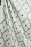 Trends Aqua Silver Metallic is a beautiful ogee pattern print in an aqua color with an embroidered metallic motif.