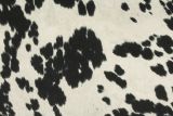 Udder Madness Black is a faux cow hide fabric printed with the look and feel of actual hair on hide. Udder Madness Black is black and off-white.