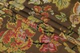 This striking European brocade is fit for a castle. The fruit, flowers, and vines are rich in detail and the colors are plentiful. Golds, reds, pinks, greens, blues, blacks...all against a milk chocolate background.
