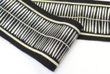 4-Inch wide tape is 100% cotton with an embroidered contemporary design in black and gold colors.