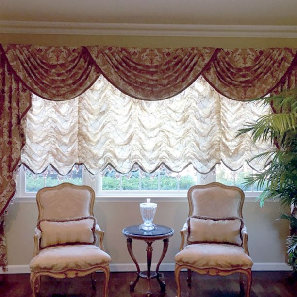 Airy touch to your windows with custom made Tailored Balloon/Cloud Shades. Their beautiful pleats puff up when raised, creating a charming and elegant look in any room.
