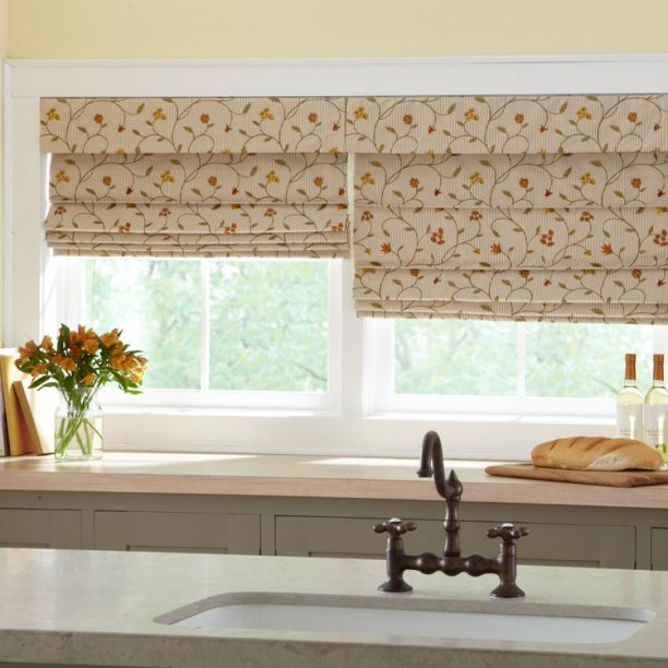 Custom-made Flat Fold / Classic Roman Shades make your windows look neat with smooth, horizontal folds. These shades add texture and style, while helping you control light and the feel of the room.