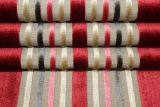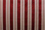 Worldwide Fabrics Kira Terracotta is a beautiful velvet fabric in a red color with raised colored stripes and a sheen.